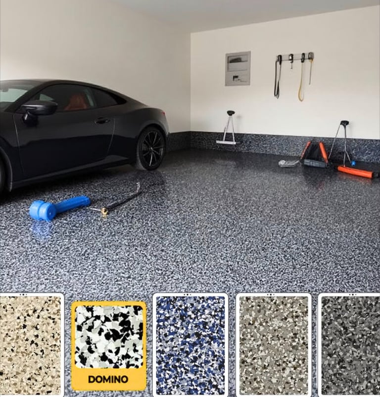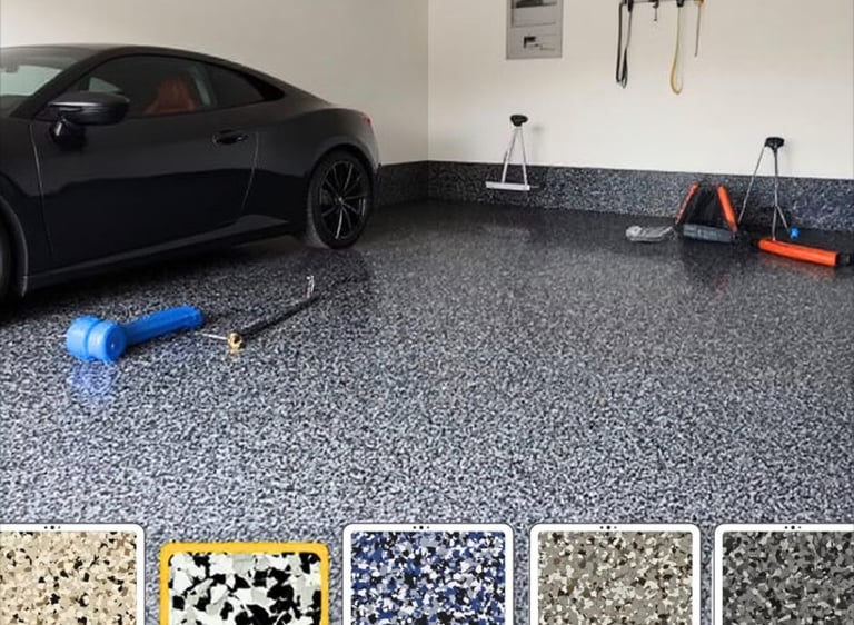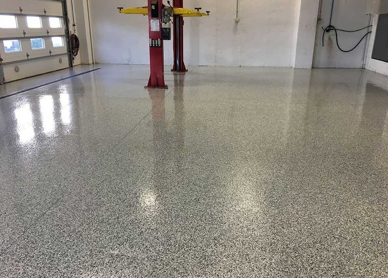 Vibrant flake floors with customizable colors and textures.
